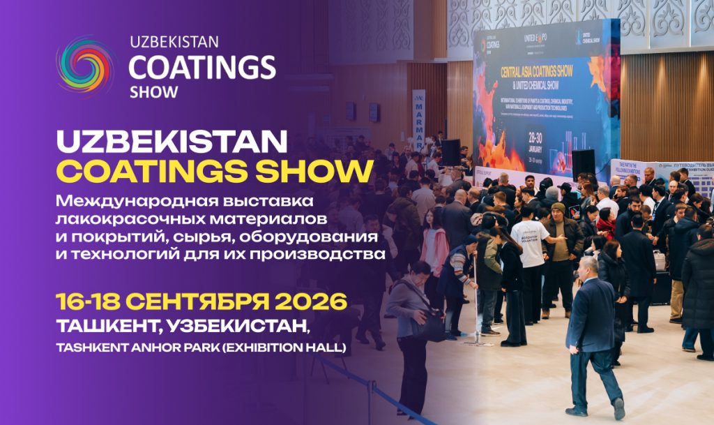 16–18 сентября 2026 года в Ташкенте, на площадке Anhor Park, состоится международная выставка лакокрасочных материалов и покрытий, сырья, оборудования и технологий для их производства — Uzbekistan Coating Show.
